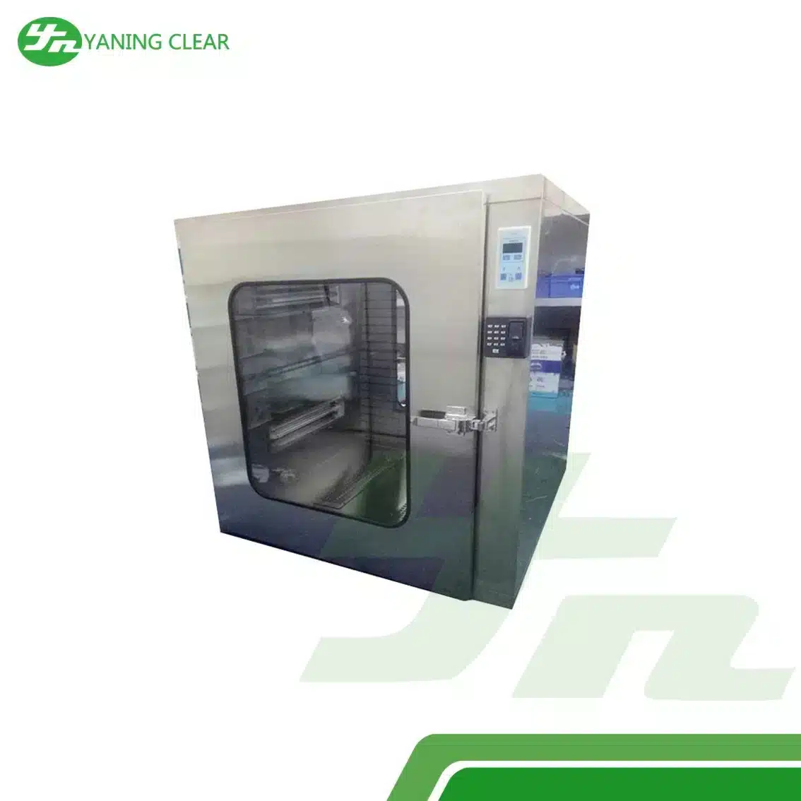 Sistem interlock sederhana memastikan hanya satu pintu yang terbuka pada satu waktu, mencegah kontaminasi silang. Unit ini cocok untuk berbagai industri termasuk farmasi, laboratorium, makanan, dan elektronik, mendukung efisiensi alur kerja dan menjaga kualitas udara sesuai standar ISO Class 5–8.