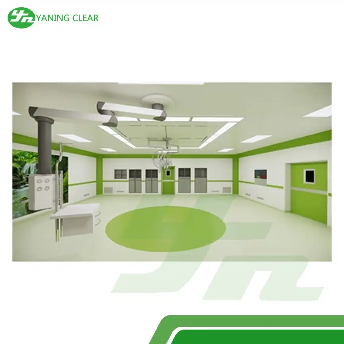 Dengan standar kebersihan Class 100, ruangan ini mampu memberikan lingkungan bedah yang sangat steril, mendukung aliran udara terkontrol, serta kompatibel dengan sistem HEPA dan laminar airflow untuk menjaga kestabilan zona steril. Permukaan dinding dan panelnya dirancang seamless sehingga mengurangi risiko penumpukan kontaminan serta memudahkan proses disinfeksi.