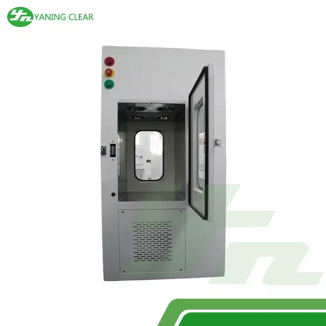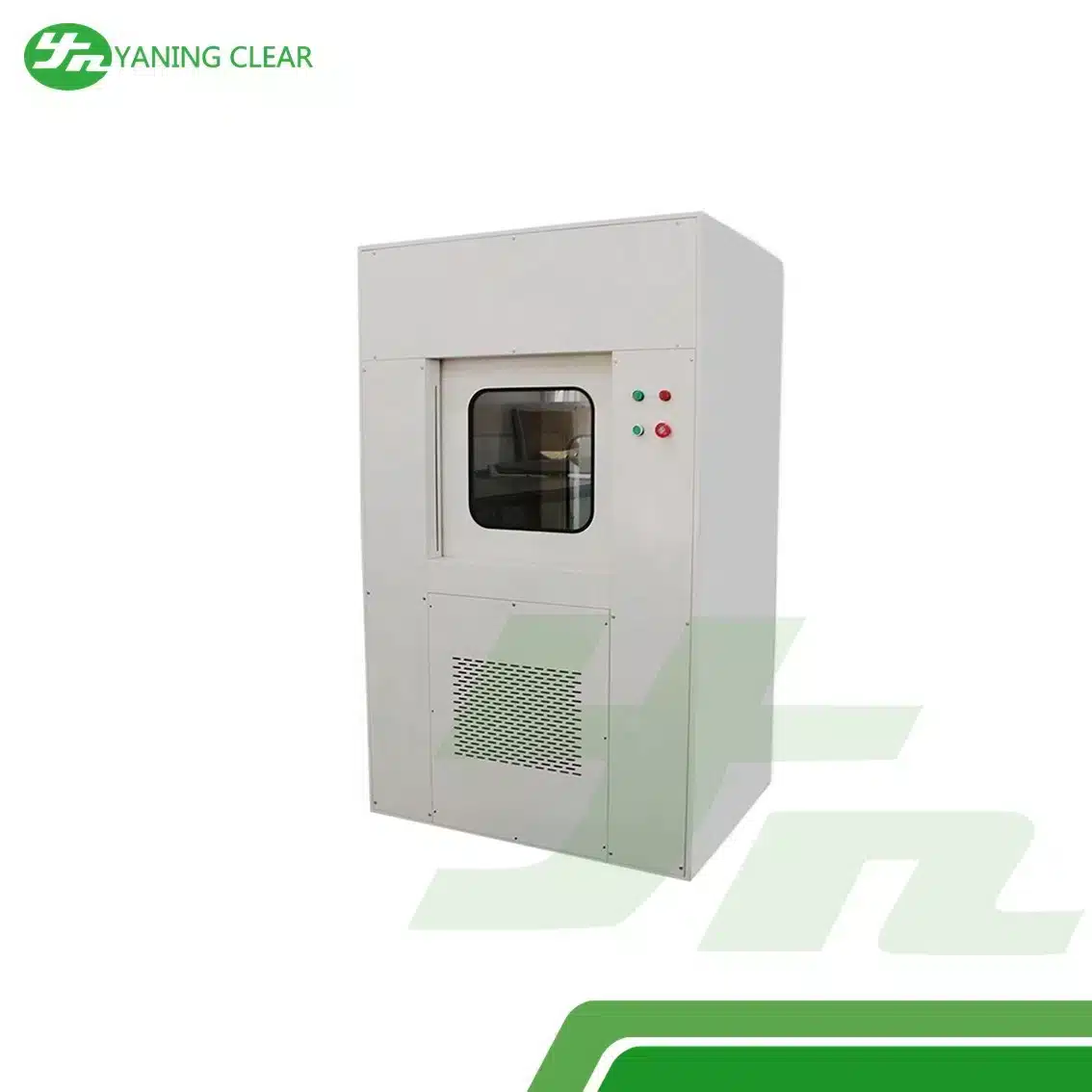 • High-Efficiency Air Shower – Menyemprotkan udara berkecepatan tinggi untuk menghilangkan partikel debu dari permukaan bahan.
