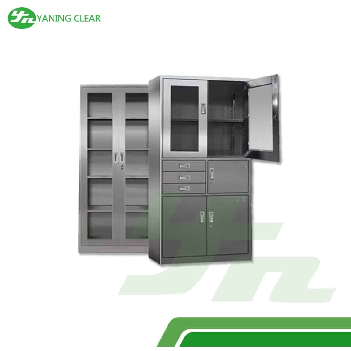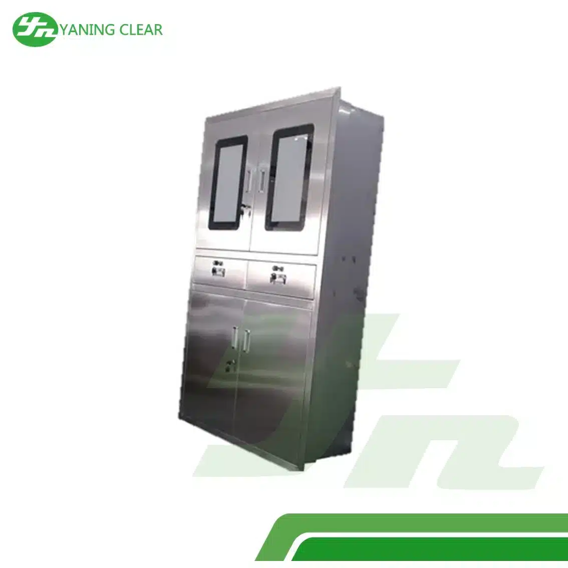 Menggunakan material stainless steel medical grade, kabinet ini memiliki ketahanan tinggi terhadap karat, cairan kimia, serta proses sterilisasi intensif. Permukaannya yang halus memudahkan pembersihan sehingga mampu menjaga standar higienis yang ketat di lingkungan rumah sakit.