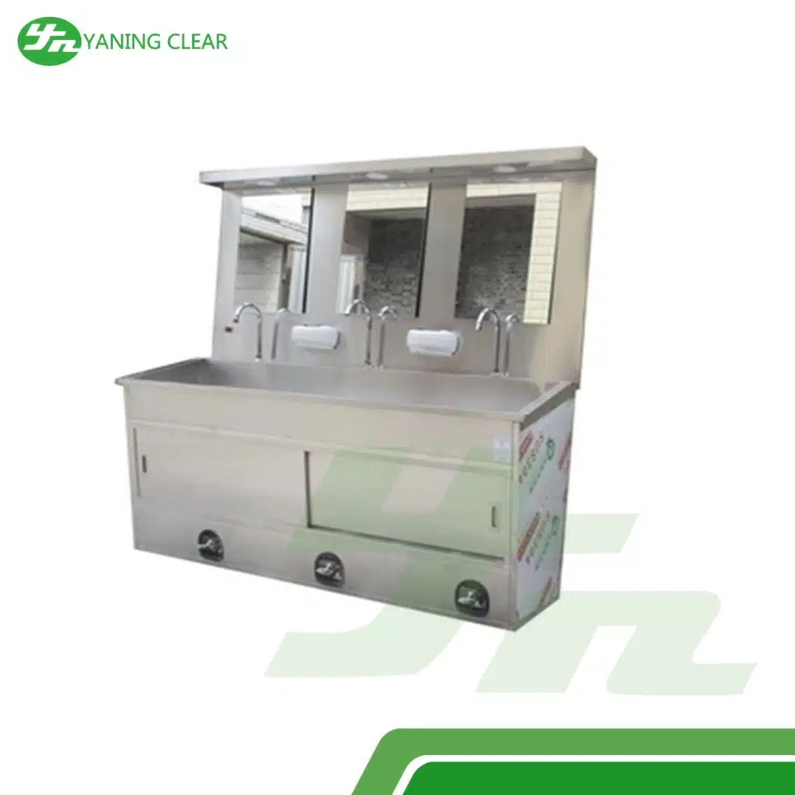 Material stainless steel 304 medical grade memberikan ketahanan terhadap korosi, mudah dibersihkan, dan memiliki umur pakai yang panjang. Dilengkapi dengan soap box terintegrasi, proses pencucian tangan menjadi lebih praktis dan efisien. Desainnya ergonomis, kokoh, dan hemat ruang, cocok untuk pemakaian intensif di fasilitas kesehatan.