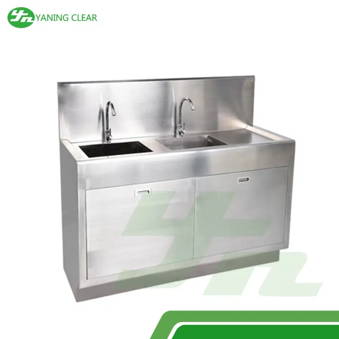 Lab Stainless Steel Double Hand Wash Sink Manual Operation Customized merupakan wastafel cuci tangan khusus laboratorium yang dirancang untuk mendukung standar kebersihan tinggi. Dengan dua bak cuci (double sink), penggunaan dapat dilakukan secara bersamaan oleh dua operator, sehingga meningkatkan efisiensi di area kerja steril.