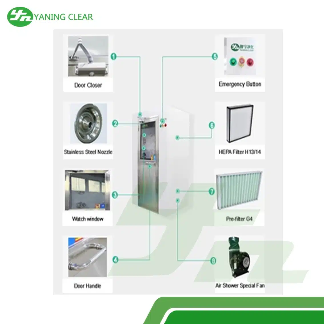 YANING Smart Air Shower with Mechanical or Electronic Interlock adalah solusi canggih untuk sistem kontrol kontaminasi di ruang bersih komersial. Dirancang untuk memastikan personel atau peralatan bebas dari partikel sebelum memasuki area steril, air shower ini menggabungkan teknologi pintar dengan efisiensi tinggi.