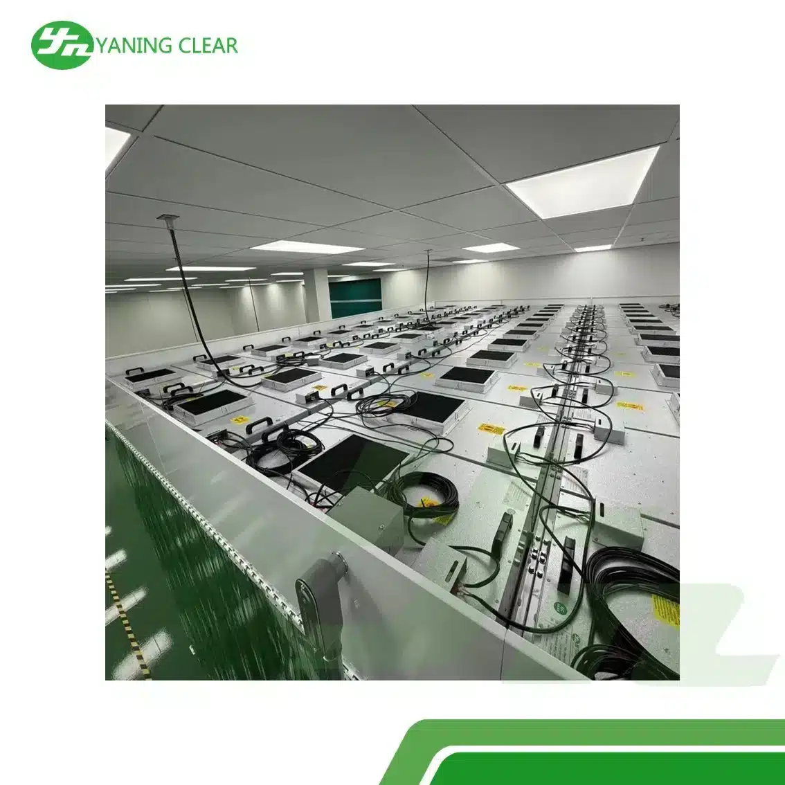 No Hang Ceiling Class 100 Modular Clean Room dengan DC Fan Filter Unit dan H14 HEPA Filter merupakan solusi terbaik untuk menciptakan ruangan bersih berstandar tinggi yang efisien dan mudah dipasang. Dirancang dengan plafon tanpa gantungan (no-hang ceiling), sistem ini menghadirkan instalasi yang cepat, rapi, serta stabil tanpa memerlukan struktur gantung tambahan.