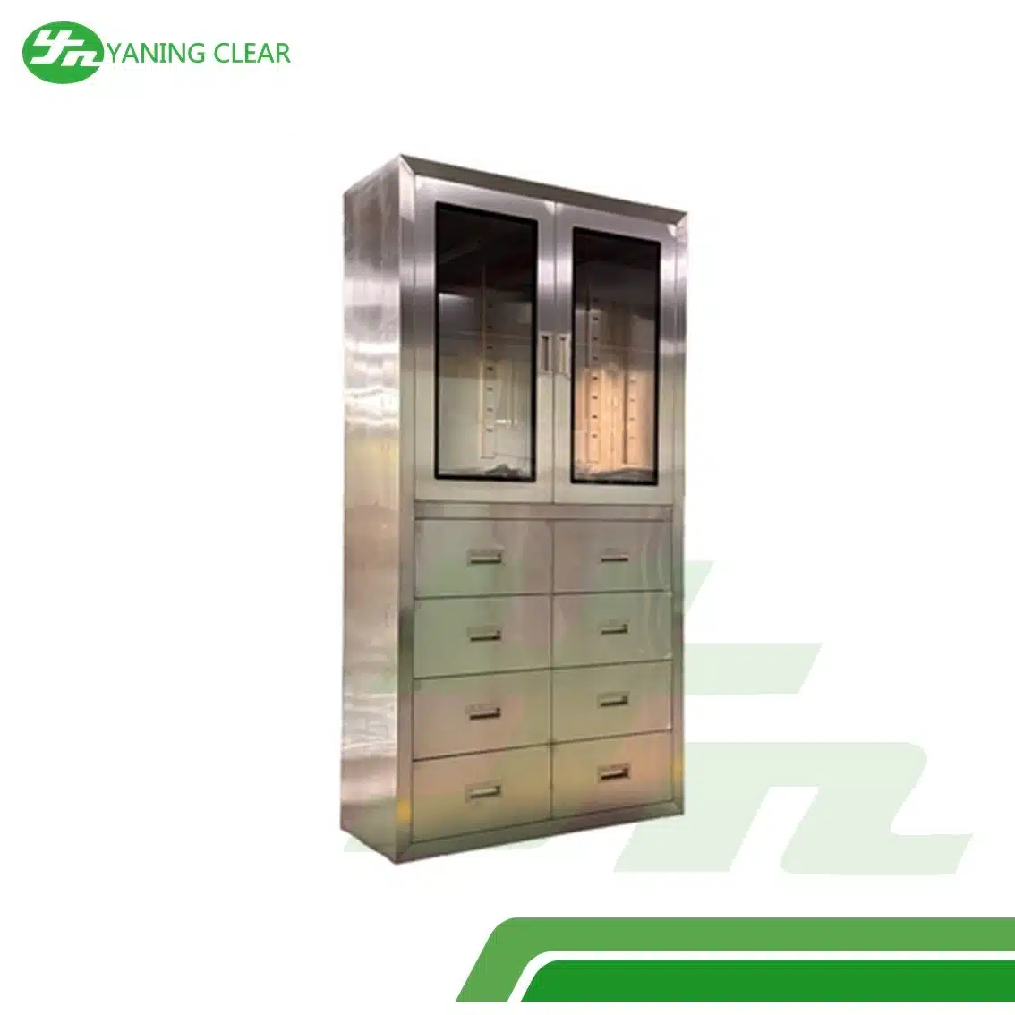 Kabinet ini terbuat dari stainless steel SUS304/SUS201 berkualitas tinggi yang tahan karat dan korosi, serta mudah dibersihkan sesuai standar sterilisasi rumah sakit. Rak dan laci adjustable memungkinkan penyimpanan peralatan medis dengan rapi dan akses cepat saat dibutuhkan.