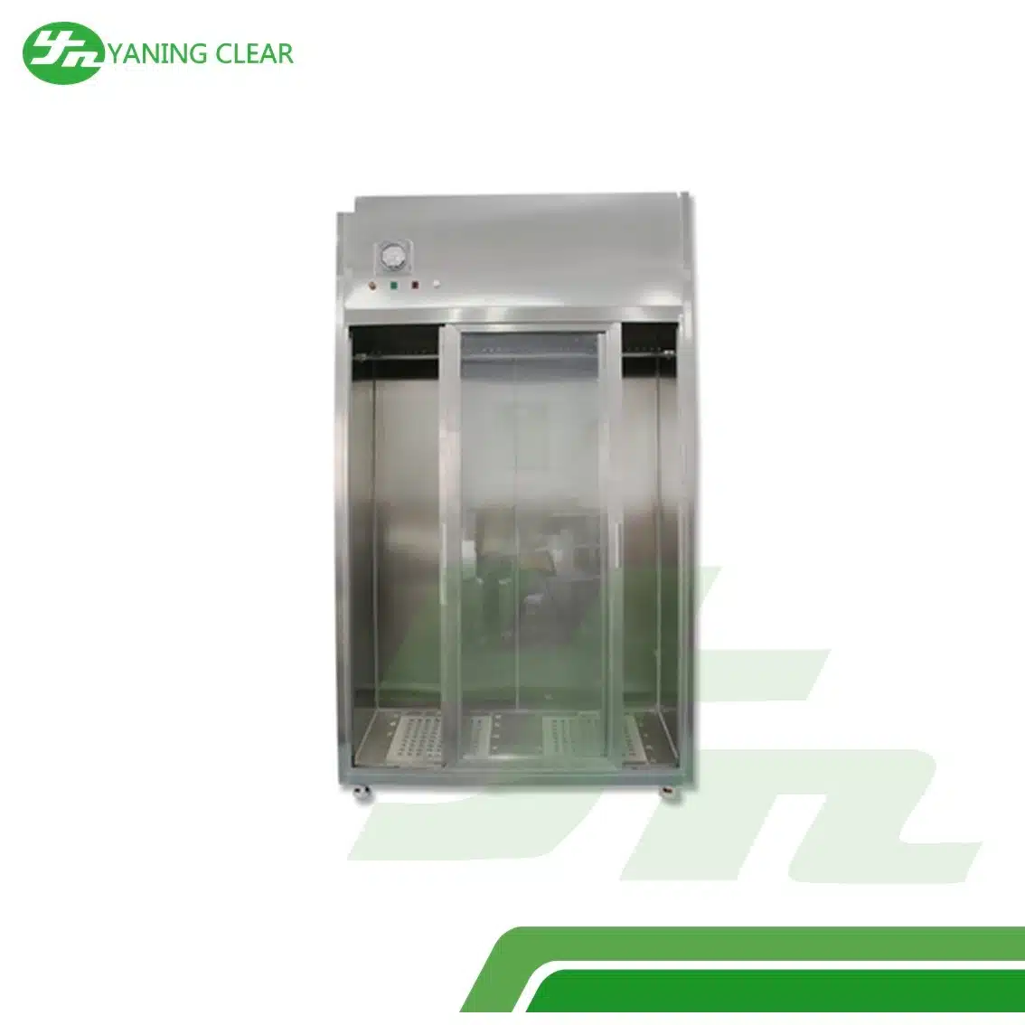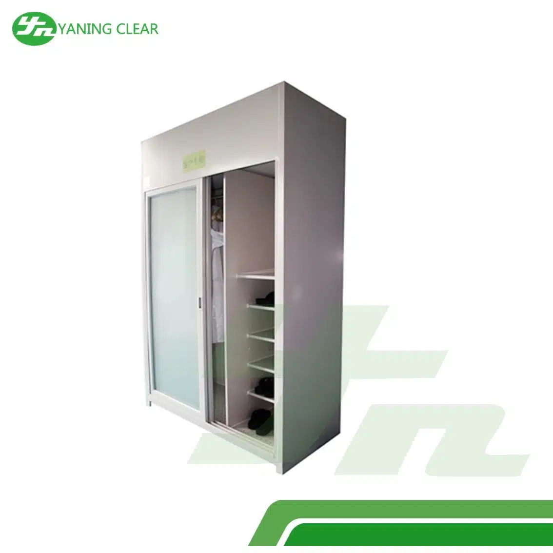 YANING Cleanroom Garment Wardrobe Dust Removal HEPA Cabinet dirancang khusus untuk menjaga kebersihan pakaian di lingkungan cleanroom. Menggunakan sistem aliran udara laminar dengan filter HEPA, lemari ini efektif menghilangkan debu dan partikel mikroskopis dari pakaian laboratorium atau industri farmasi dan elektronik. Terbuat dari stainless steel SUS304, produk ini tahan lama, mudah dibersihkan, dan sesuai dengan standar GMP. Desain ergonomis dengan pintu geser memudahkan penggunaan dan akses, sementara aliran udara yang stabil menjamin perlindungan optimal terhadap kontaminasi. Ideal untuk penggunaan di laboratorium, cleanroom, atau fasilitas produksi yang memerlukan kebersihan tinggi.