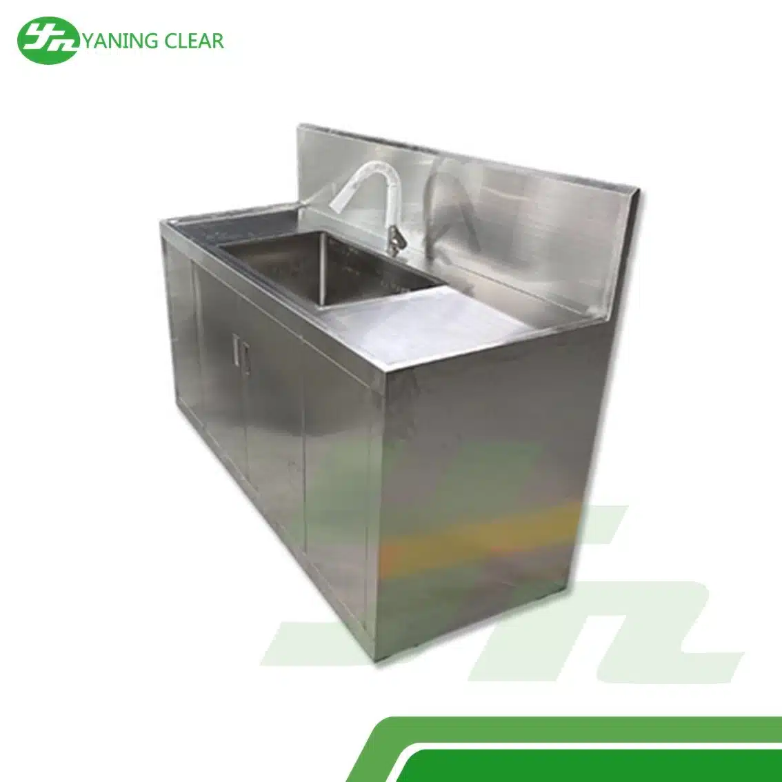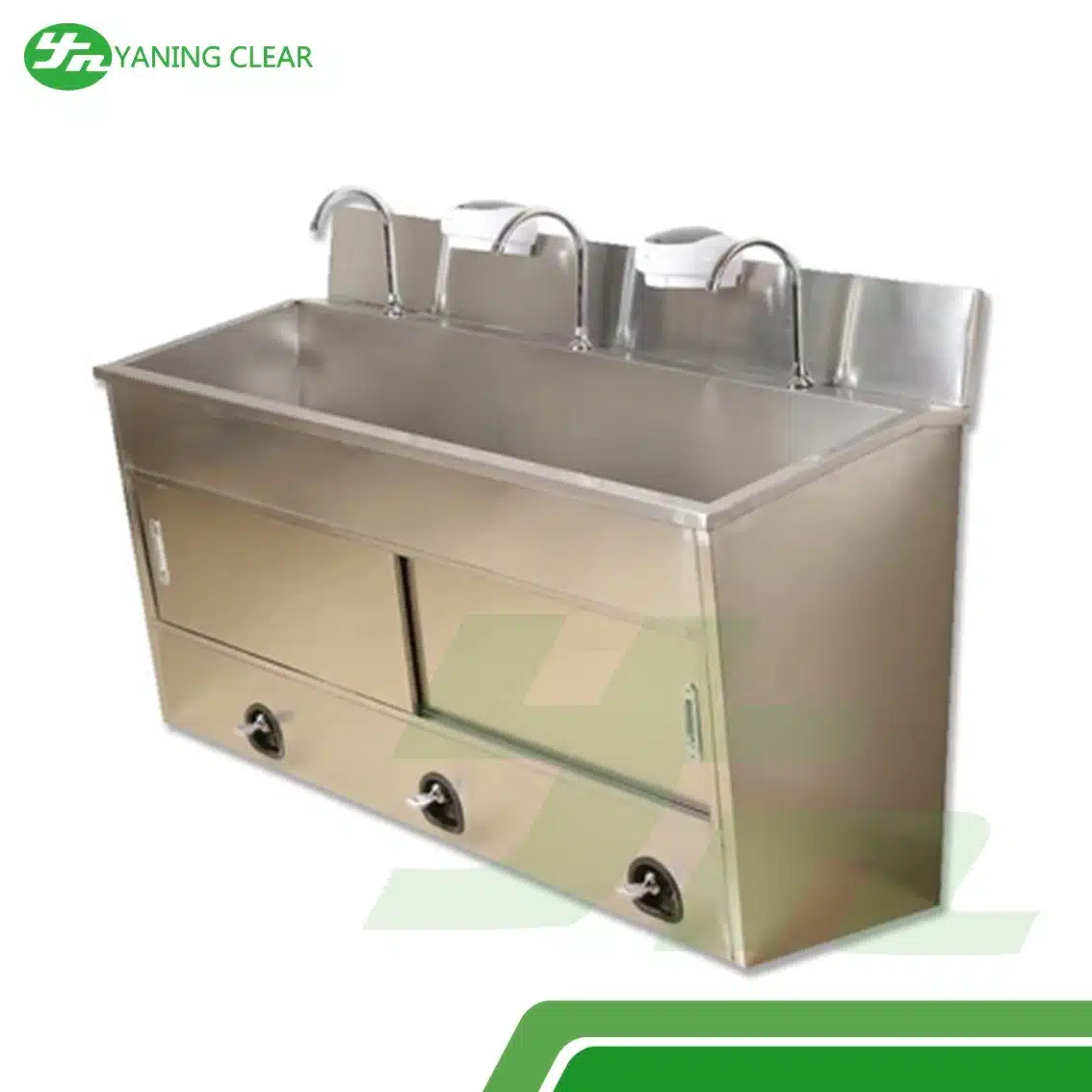 YANING Knee Operated Hand Wash Sink Stainless Steel Material adalah wastafel cuci tangan medis yang dirancang untuk menjaga standar higienitas tinggi di area steril. Sistem knee-operated memungkinkan pengguna menyalakan air hanya dengan menekan panel lutut, sehingga mengurangi risiko kontaminasi dan menjaga kebersihan tangan sebelum tindakan medis.